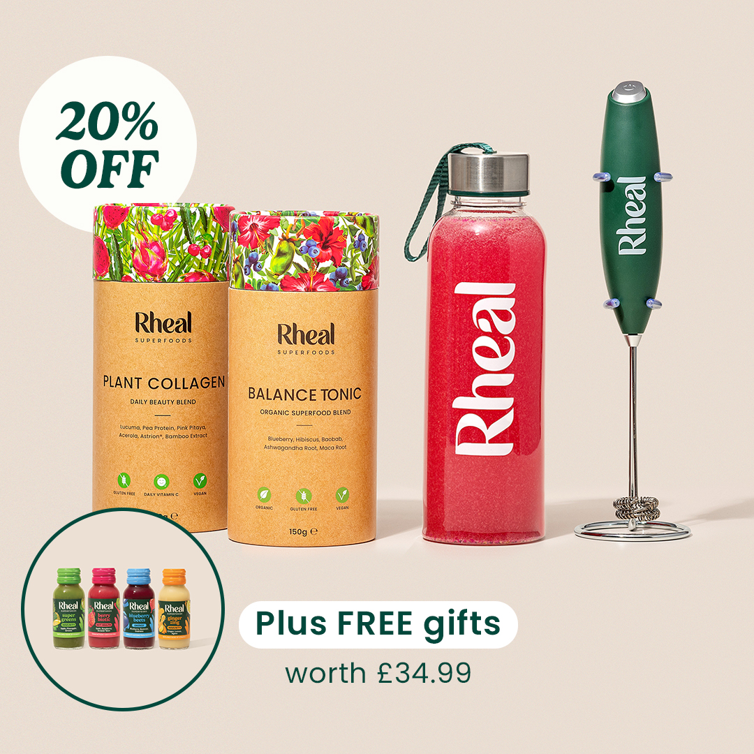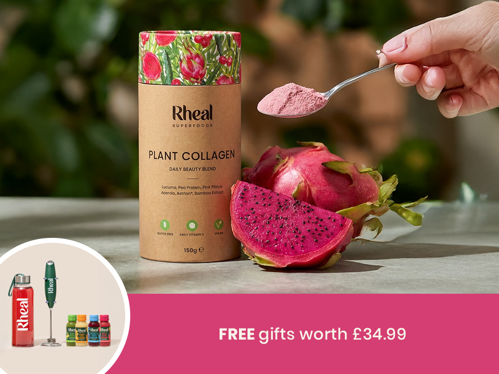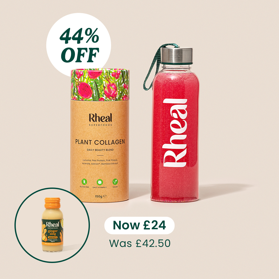 Rheal Plant Collagen is a completely plant based collagen alternative, with clinically studied ingredients proven to increase our ability to produce more collagen and hyaluronic acid. Think of it as your daily dose of skin-loving nutrients, with natural superfood ingredients chosen to help you rediscover your natural glow from within. As well as being fantastic for skin health and hydration, it has other benefits too such as helping joint pain or stiffness and strengthening hair and nails.